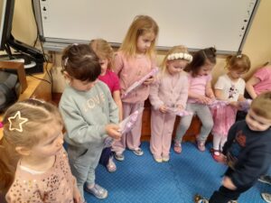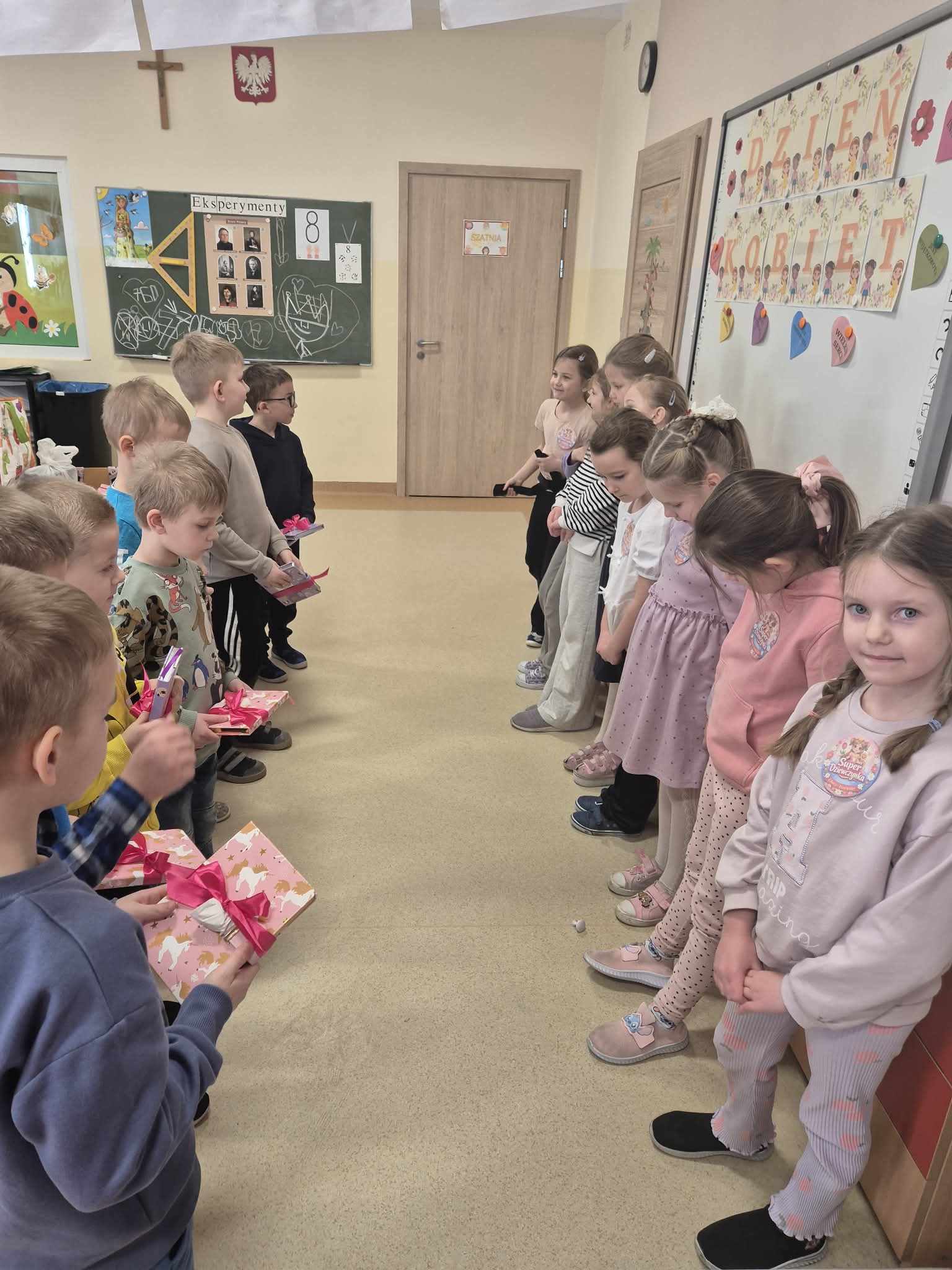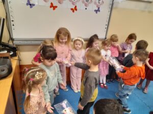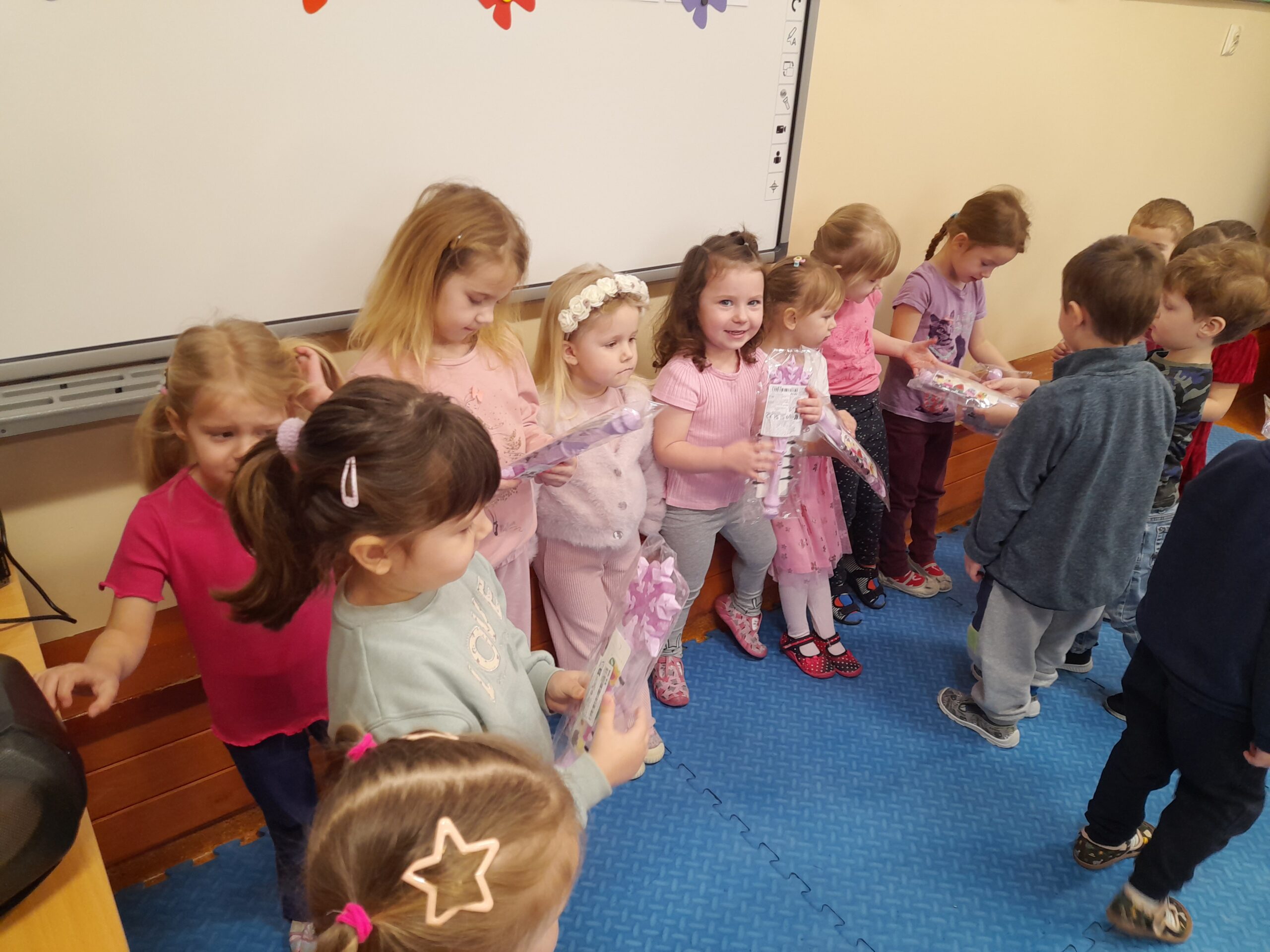 9 marca w naszym przedszkolu obchodziliśmy wyjątkowe święto – Dzień Kobiet. Tego dnia chłopcy zadbali o to, aby dziewczynki poczuły się naprawdę wyjątkowo. Wręczyli im upominki, składając przy tym serdeczne życzenia. Wszystkie dzieci miały również okazję uczestniczyć w przedstawieniu przygotowanym z okazji Dnia Kobiet przez uczniów naszej szkoły podstawowej. Młodzi artyści zaprezentowali ciekawy i radosny program, który spotkał się z ogromnym entuzjazmem przedszkolaków. Występ dostarczył wszystkim wielu pozytywnych emocji i był wspaniałym urozmaiceniem tego wyjątkowego dnia.