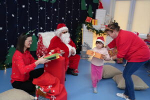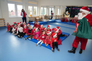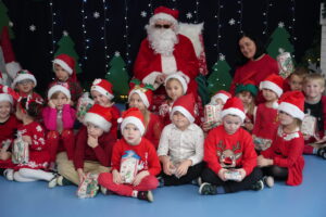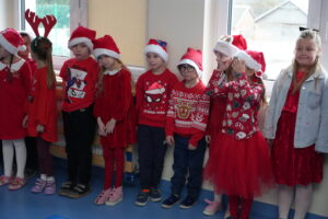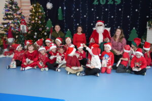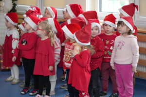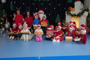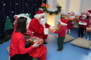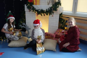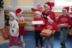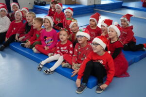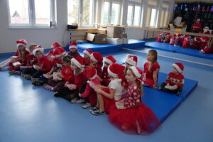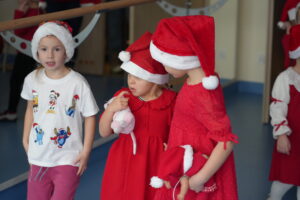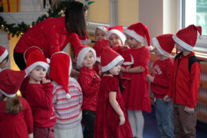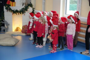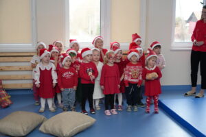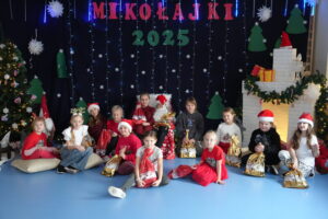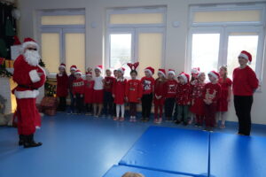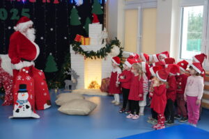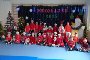 5 grudnia 2025r. w naszym przedszkolu odbyły się wyjątkowe Mikołajki, które przyniosły dzieciom mnóstwo radości i niezapomnianych wrażeń. Dzieci przyszły tego dnia ubrane na czerwono, a na głowach dumnie nosiły czapki mikołajowe, wprowadzając magiczny, świąteczny nastrój. Dzięki zaangażowaniu mam naszych przedszkolaków powstała piękna dekoracja, przy której dzieci wykonywały pamiątkowe zdjęcia. Nie zabrakło także artystycznych występów – dzieci śpiewały wesołe piosenki i recytowały wiersze specjalnie dla Mikołaja, który wręczył wszystkim dzieciom prezenty. To był dzień pełen radości i świątecznej magii, który na długo pozostanie w pamięci naszych przedszkolaków.