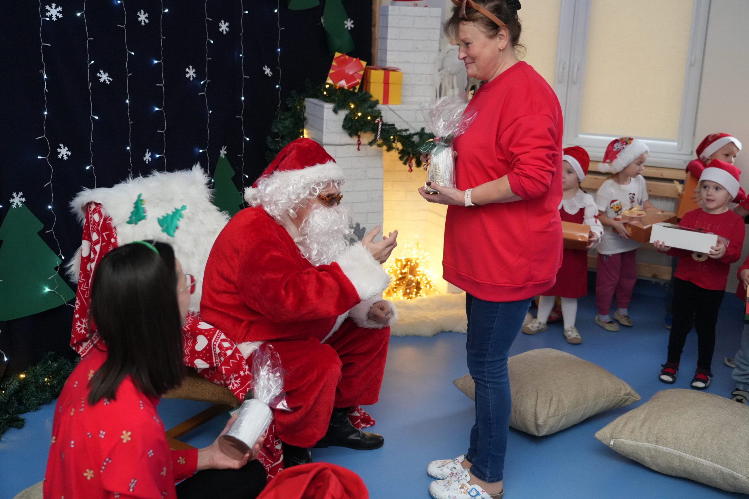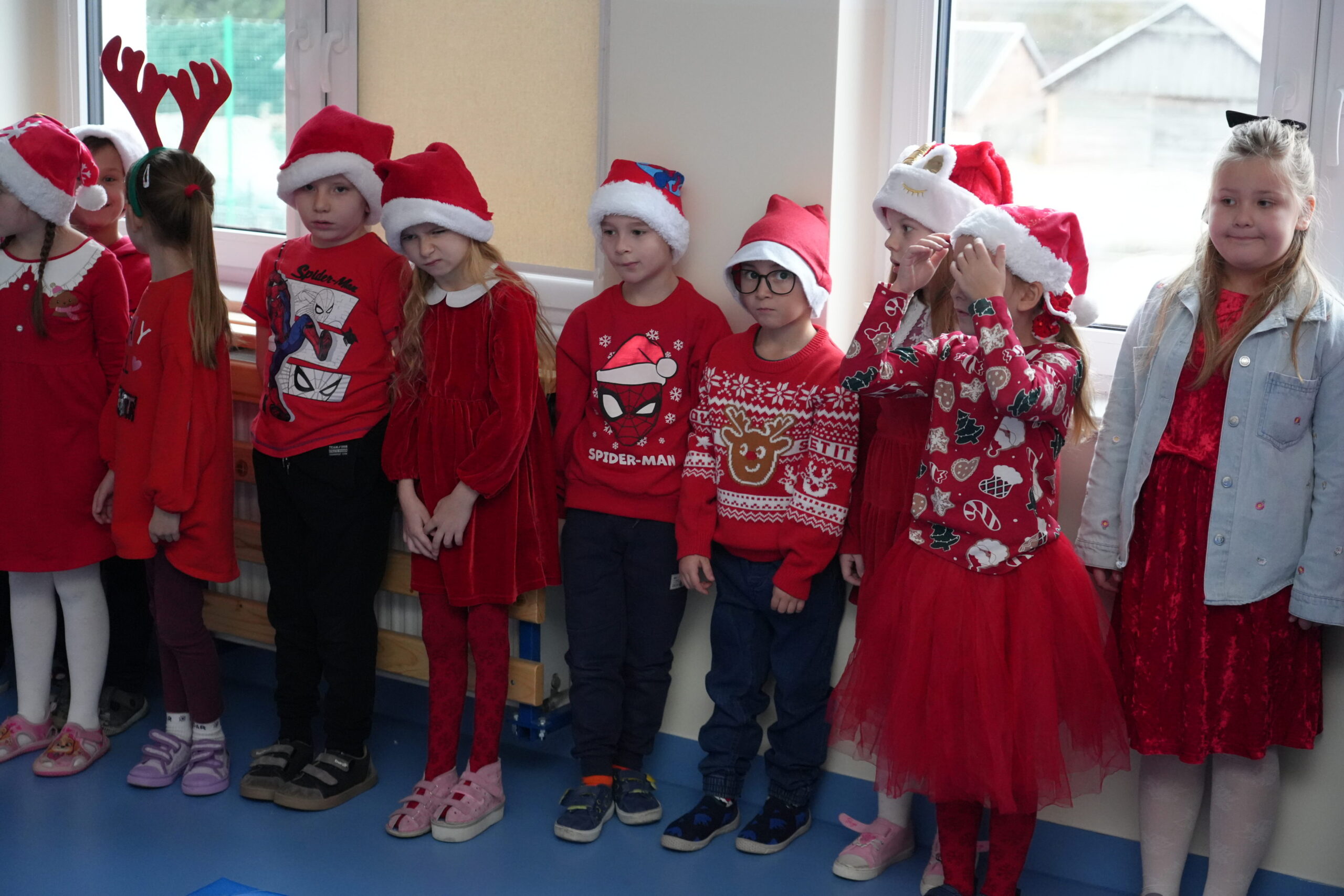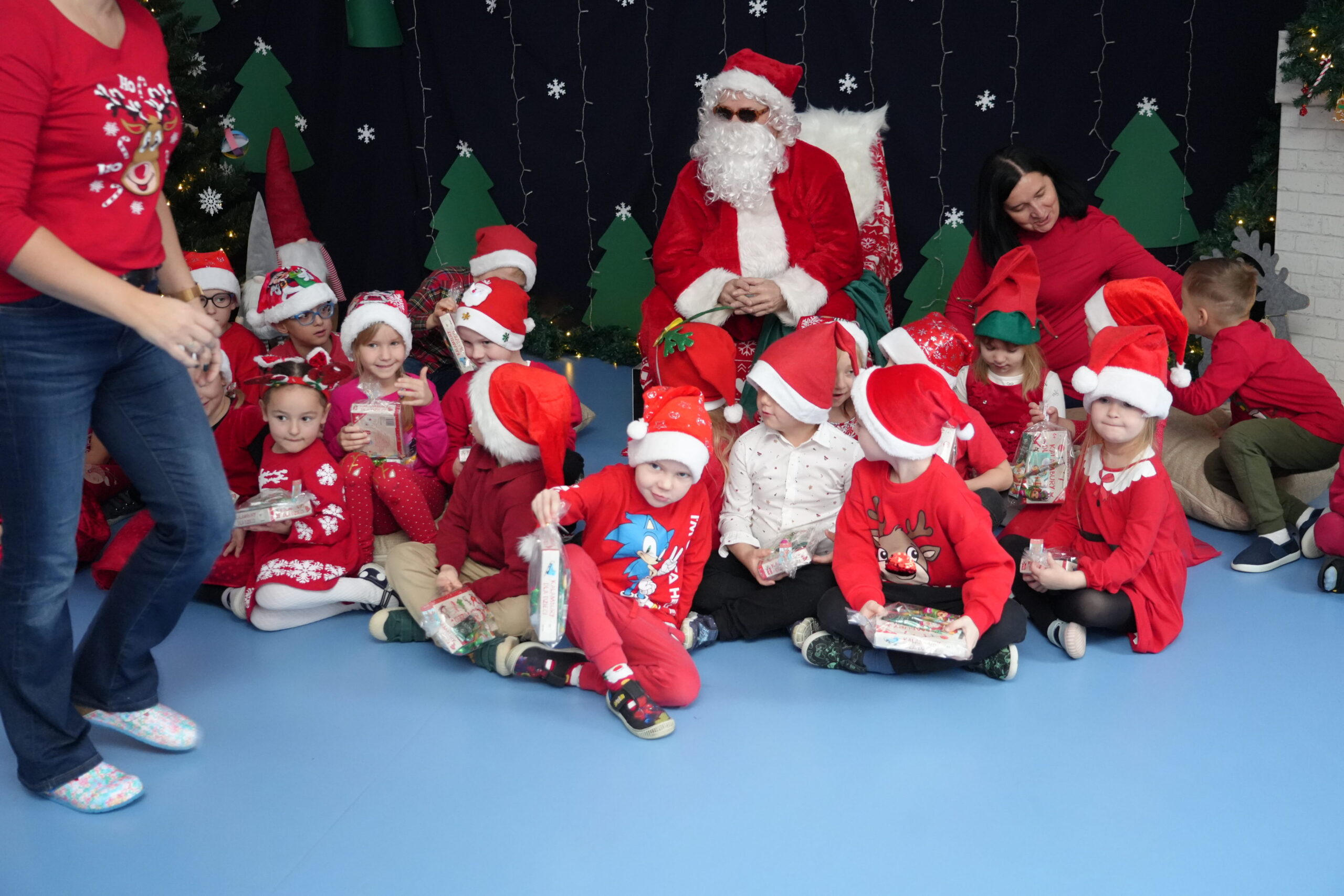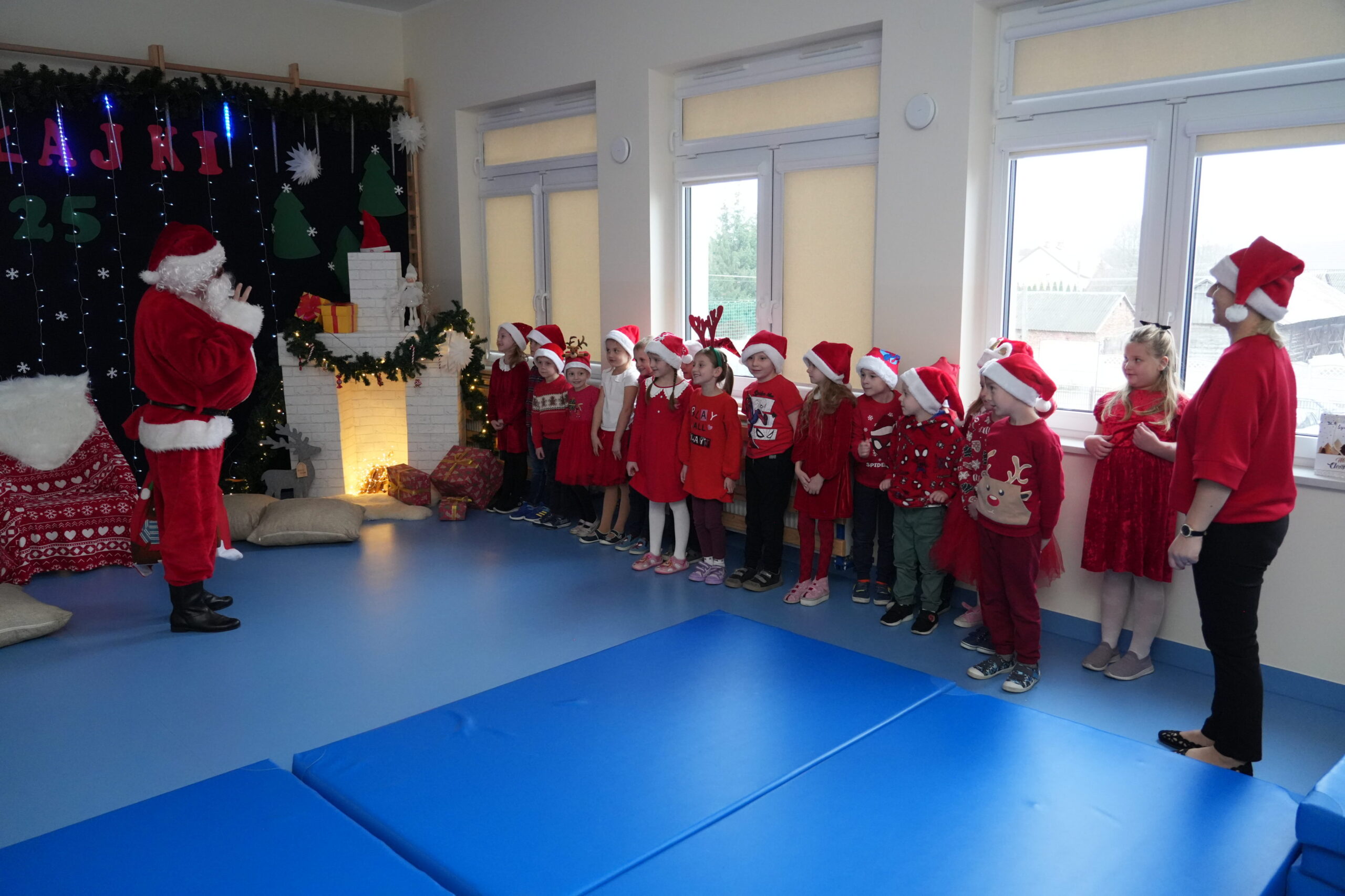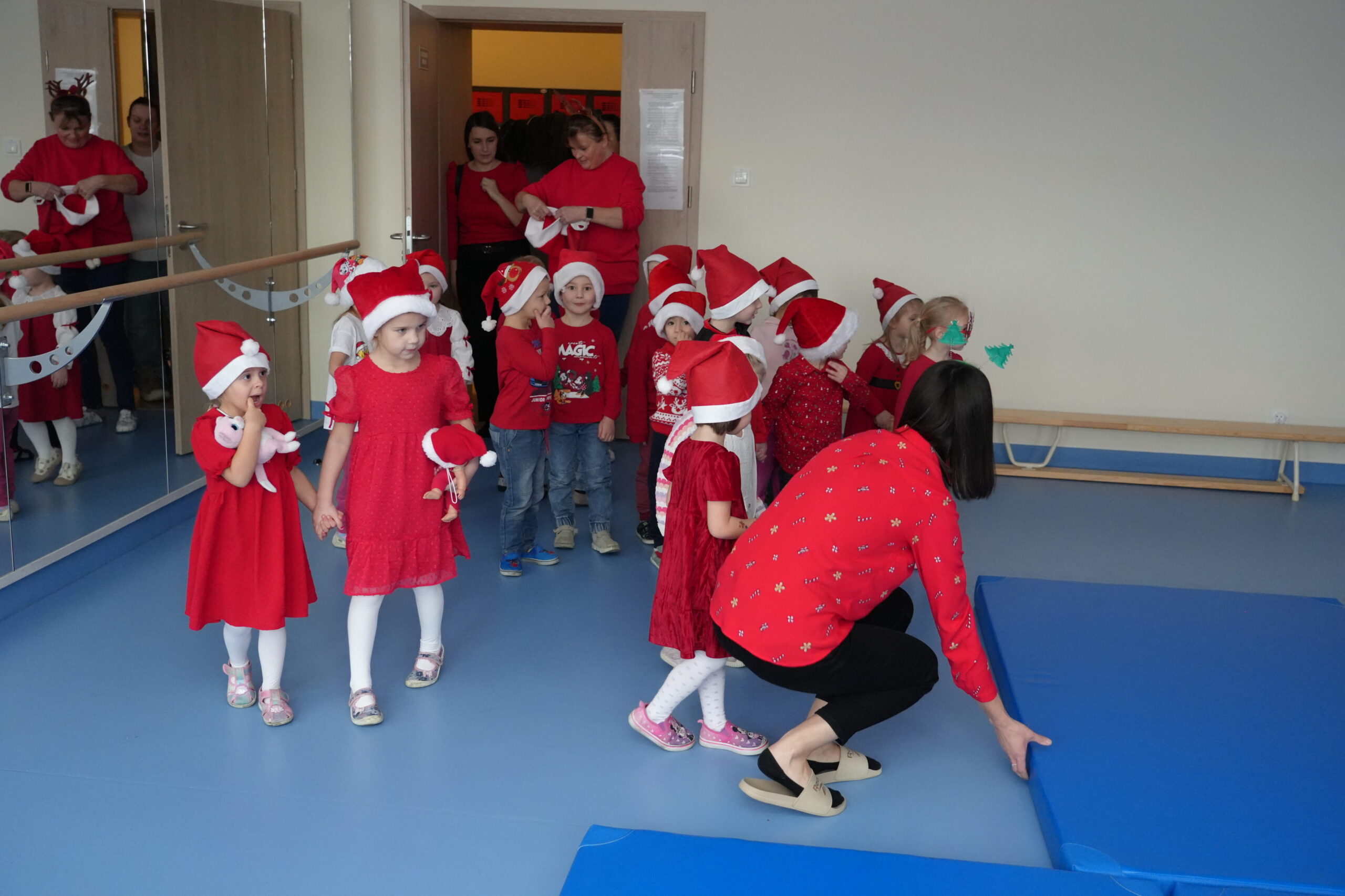 5 grudnia 2025r. w naszym przedszkolu odbyły się wyjątkowe Mikołajki, które przyniosły dzieciom mnóstwo radości i niezapomnianych wrażeń. Dzieci przyszły tego dnia ubrane na czerwono, a na głowach dumnie nosiły czapki mikołajowe, wprowadzając magiczny, świąteczny nastrój. Dzięki zaangażowaniu mam naszych przedszkolaków powstała piękna dekoracja, przy której dzieci wykonywały pamiątkowe zdjęcia. Nie zabrakło także artystycznych występów – dzieci śpiewały wesołe piosenki i recytowały wiersze specjalnie dla Mikołaja, który wręczył wszystkim dzieciom prezenty. To był dzień pełen radości i świątecznej magii, który na długo pozostanie w pamięci naszych przedszkolaków.