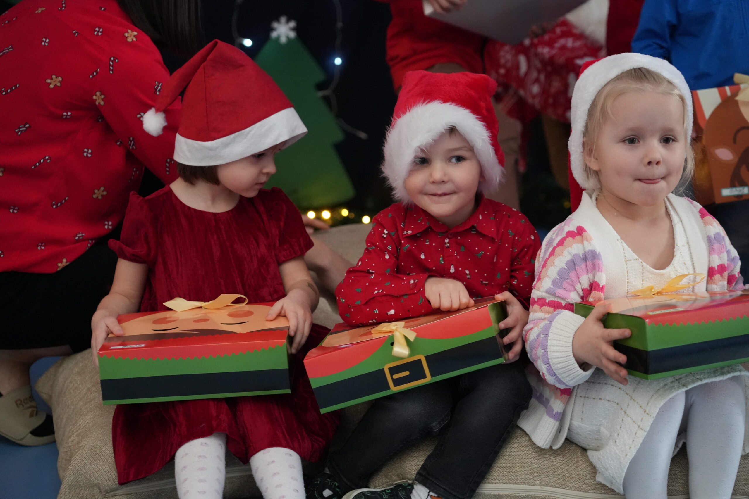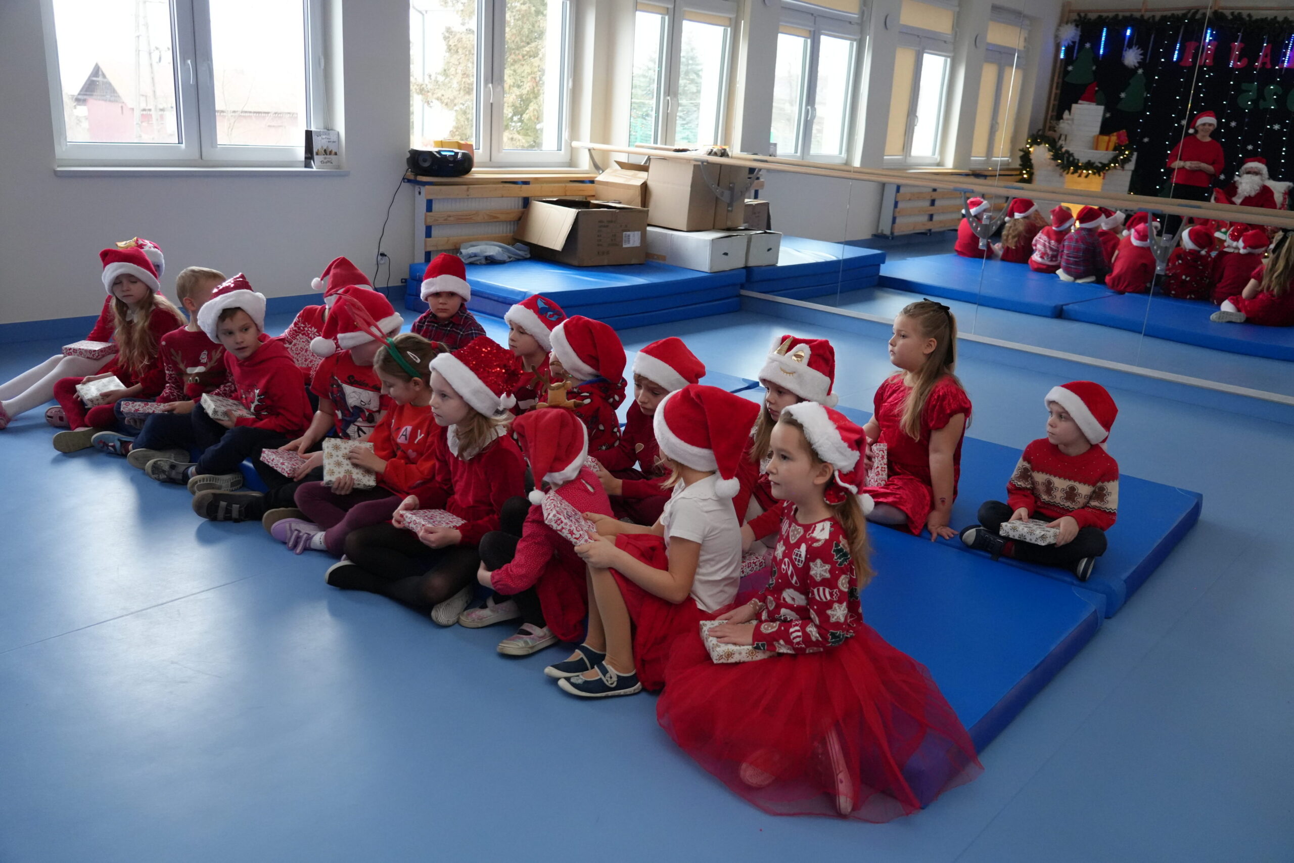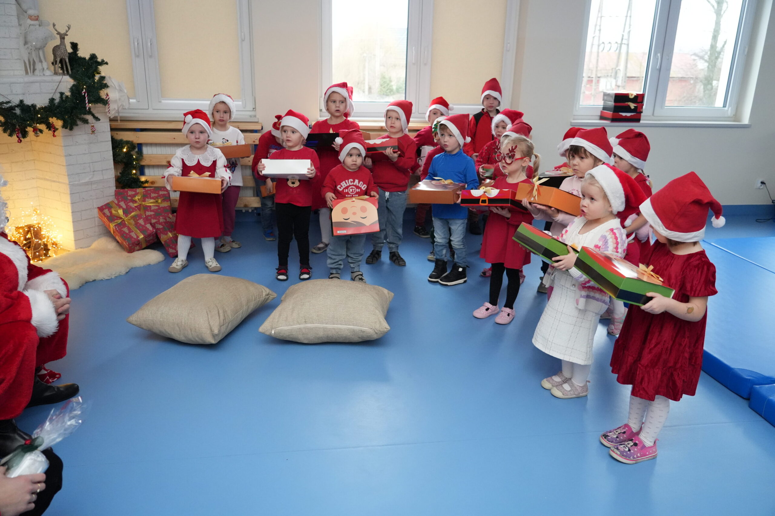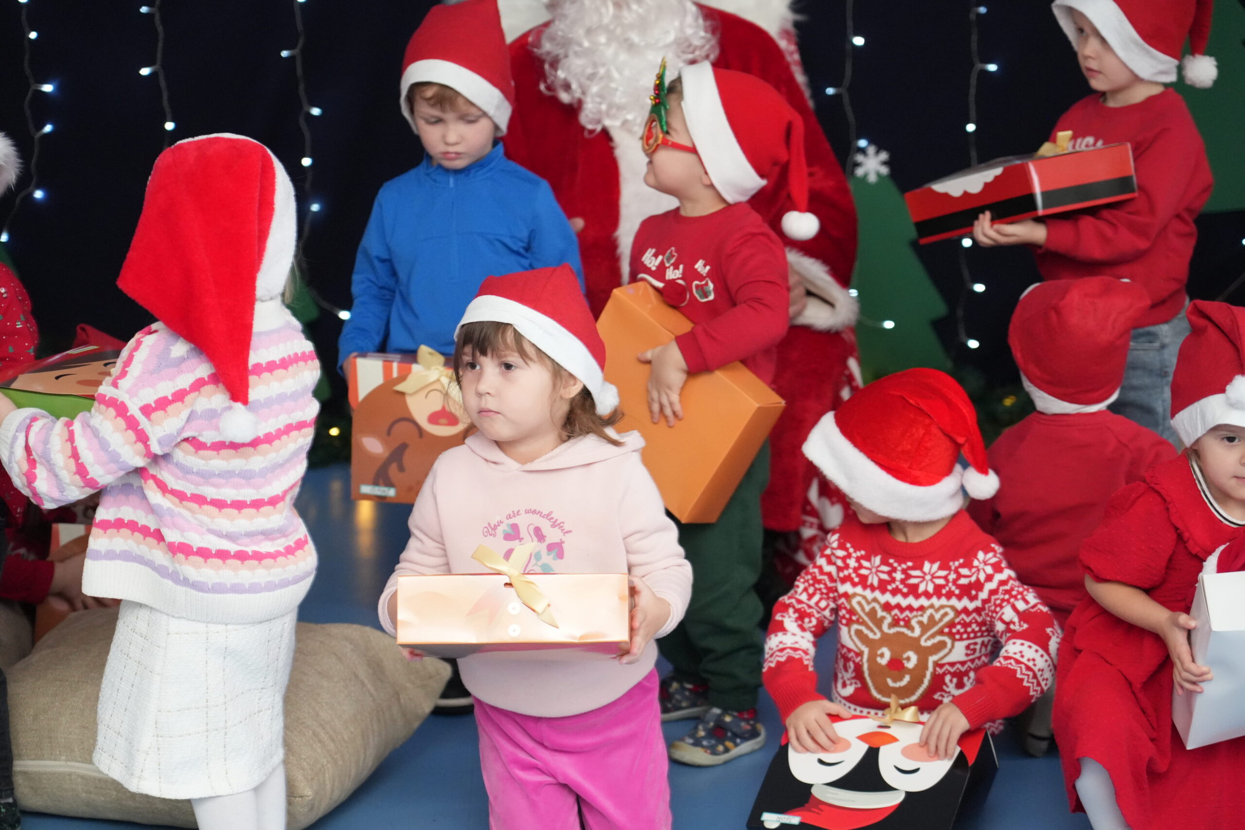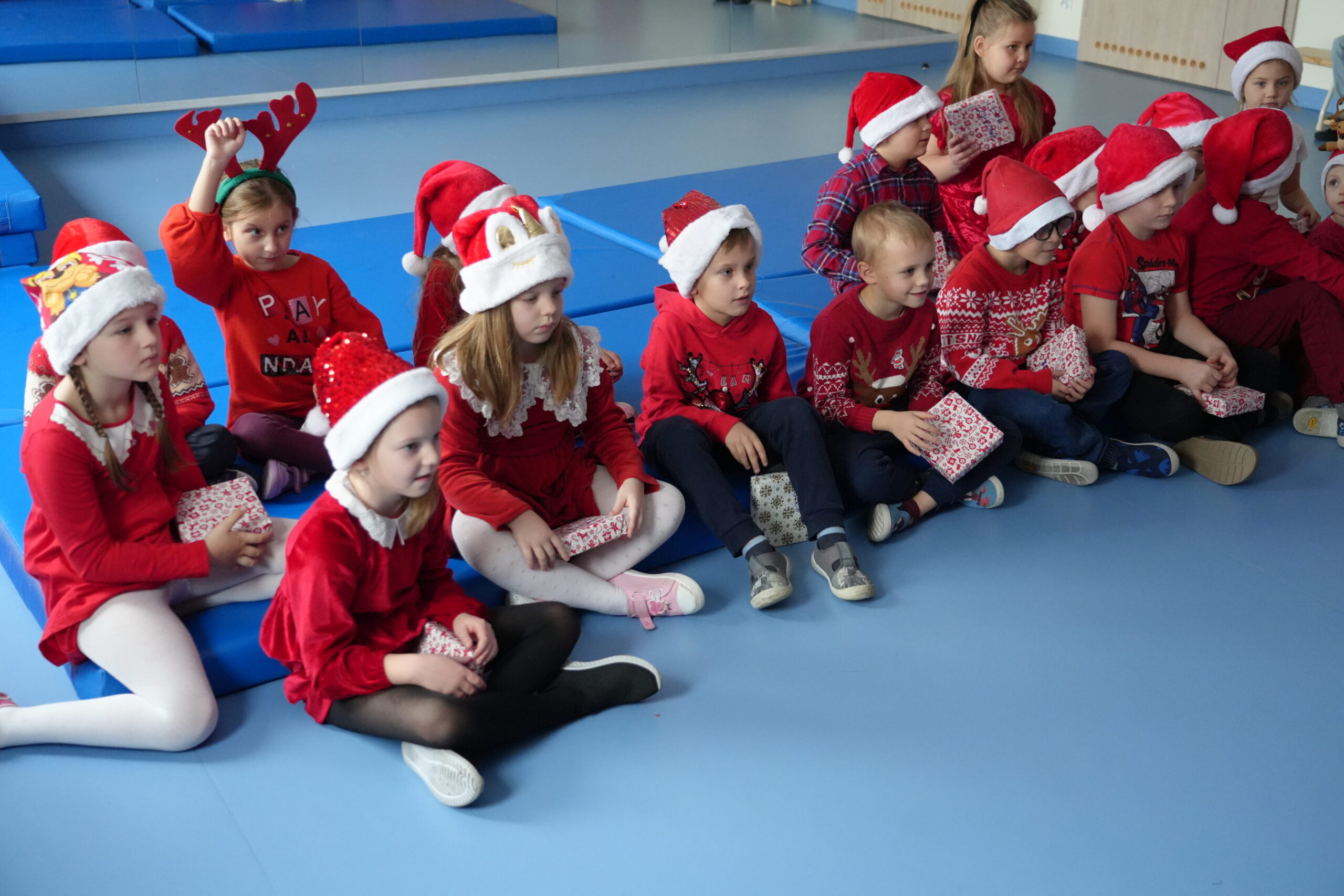 5 grudnia 2025r. w naszym przedszkolu odbyły się wyjątkowe Mikołajki, które przyniosły dzieciom mnóstwo radości i niezapomnianych wrażeń. Dzieci przyszły tego dnia ubrane na czerwono, a na głowach dumnie nosiły czapki mikołajowe, wprowadzając magiczny, świąteczny nastrój. Dzięki zaangażowaniu mam naszych przedszkolaków powstała piękna dekoracja, przy której dzieci wykonywały pamiątkowe zdjęcia. Nie zabrakło także artystycznych występów – dzieci śpiewały wesołe piosenki i recytowały wiersze specjalnie dla Mikołaja, który wręczył wszystkim dzieciom prezenty. To był dzień pełen radości i świątecznej magii, który na długo pozostanie w pamięci naszych przedszkolaków.